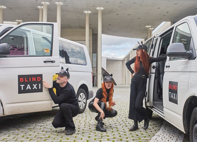 für „blinde“ Taxi-Fahrten zu Orten, die bis zur Ankunft ans Ziel unbekannt bleiben – also ein Blind Taxi!